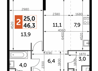 Продажа 2-комнатной квартиры, 46.3 м2, улица Шеногина, 2