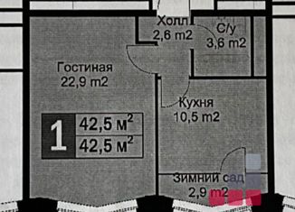 Общая площадь: 42.8 м2