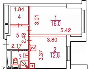 Продам 1-комнатную квартиру, 39.5 м2, Корабельная улица, 17к2