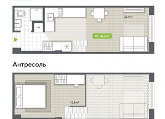 Однокомнатная квартира на продажу, 36.1 м2, Привольная улица, 73к2