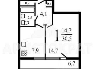 Общая площадь: 30.7 м2