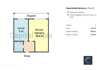 Продается однокомнатная квартира, 36 м2, Харьковский проезд, 11к4