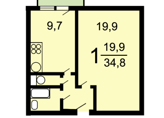 Общая площадь: 34.8 м2