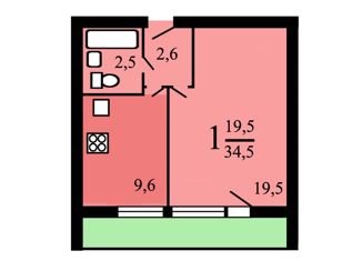 Общая площадь: 33.7 м2
