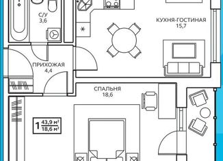 Однокомнатная квартира на продажу, 43.9 м2, улица Маргелова, 3к1