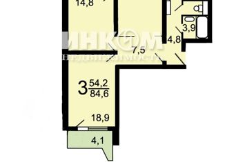 3-комнатная квартира на продажу, 81.4 м2, Ангарская улица, 45к2