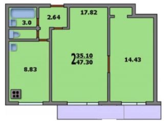 Общая площадь: 47.3 м2