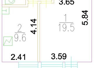 Общая площадь: 38.4 м2