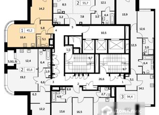 Общая площадь: 45.6 м2