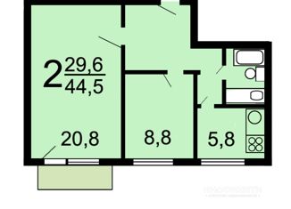 Продается двухкомнатная квартира, 44.1 м2, Зверинецкая улица, 14