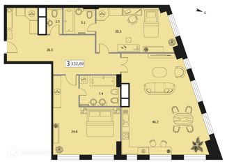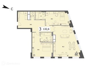 Общая площадь: 132.6 м2