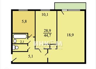 Общая площадь: 44.7 м2