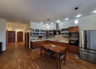 Продаётся четырехкомнатная квартира с дизайнерским ремонтом в классическом стиле. В квартире большая гостиная, три спальни (к одной примыкает гардеробная комната), большой холл, кухня, два санузла. Отделка из качественных материалов. На полу паркет из массива дерева. Кондиционеры Mitsubishi Electric. На кухне техника Bosch. В доме продуктовый магазин... |