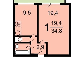 Продажа однокомнатной квартиры, 34.8 м2, улица Кутузова, 11