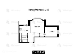2-комнатная квартира на продажу, 59.4 м2, улица Полины Осипенко, 2к3