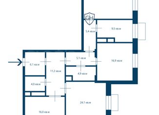 Продаю трехкомнатную квартиру, 101 м2, улица Вересаева, 9