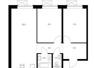 Продается двухкомнатная квартира, 59.1 м2, жилой комплекс Полярная 25, 3
