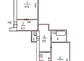 Общая площадь: 17.8 м2