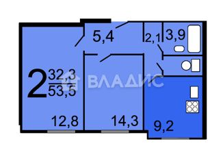 Общая площадь: 53.7 м2