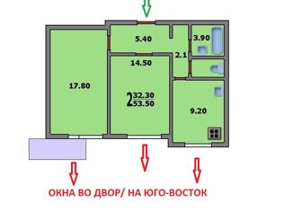 Общая площадь: 53.8 м2