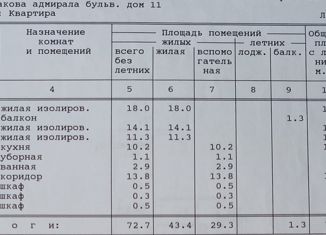 3-ком. квартира на продажу, 74 м2, бульвар Адмирала Ушакова, 11