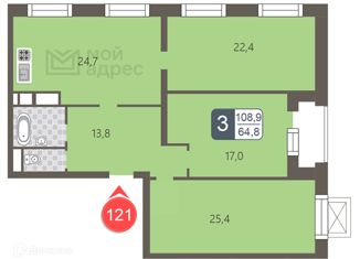 Продам трехкомнатную квартиру, 108.9 м2, Береговой проезд, 1Б