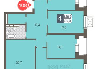 4-комнатная квартира на продажу, 128.5 м2, Береговой проезд, 1Б