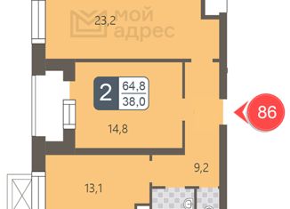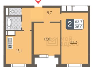 Продается двухкомнатная квартира, 64.2 м2, Береговой проезд, 1Б