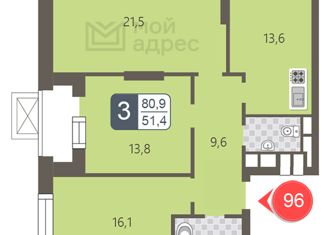 Трехкомнатная квартира на продажу, 80.9 м2, Береговой проезд, 1Б