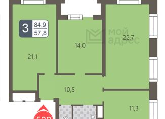 Общая площадь: 84.9 м2