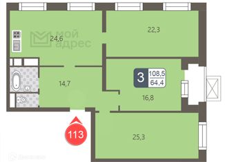 Продам 3-комнатную квартиру, 108.5 м2, Береговой проезд, 1Б