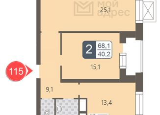 Общая площадь: 68.2 м2