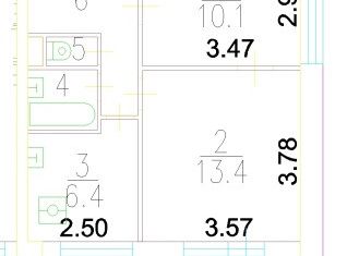 Общая площадь: 57.4 м2