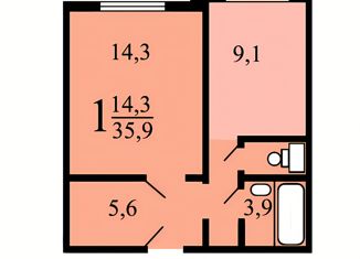 Продажа 1-комнатной квартиры, 34.9 м2, улица Введенского, 13к4