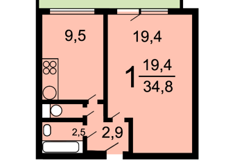 Общая площадь: 34.8 м2