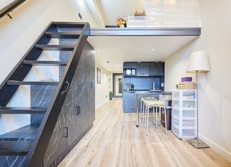 Продается замечательный двухуровневый апарт с окнами во двор в 10 мин. пешком от м. Сокол. Полностью обставлен, укомплектован всей бытовой техникой. Первый ярус с полным сан.узлом со шкафом-купе в прихожей. Кухня-гостиная 4+10 кв.м с кухонным гарнитуром, с барным столом, раскладывающимся диваном. На второй ярус ведет складывающаяся лестница, где: двуспальна... |