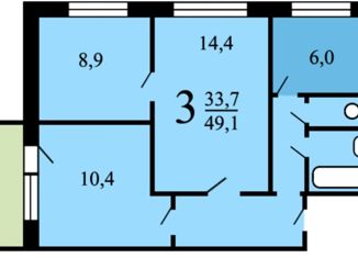 3-ком. квартира на продажу, 49.3 м2, Шоссейная улица, 58к2