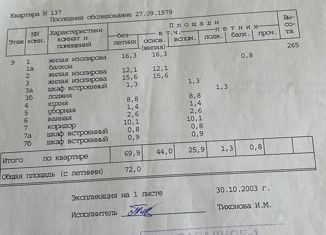 3-комнатная квартира на продажу, 72.8 м2, улица Кутузова, 2