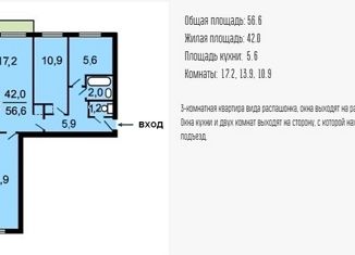 Продажа 3-ком. квартиры, 56.6 м2, Лодочная улица, 33с1