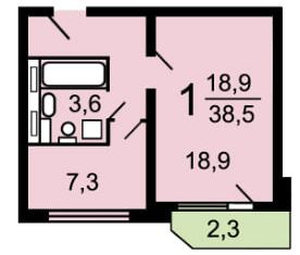 Общая площадь: 38.6 м2