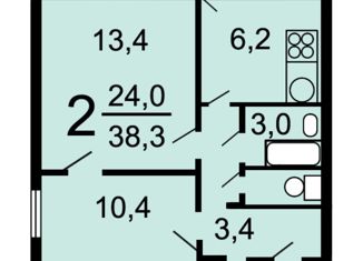 Общая площадь: 38.2 м2