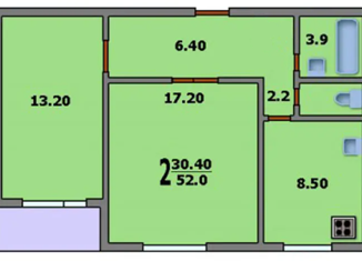 Двухкомнатная квартира на продажу, 51.7 м2, Рябиновая улица, 6