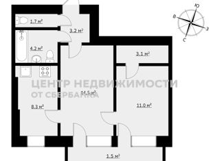 Общая площадь: 55.5 м2