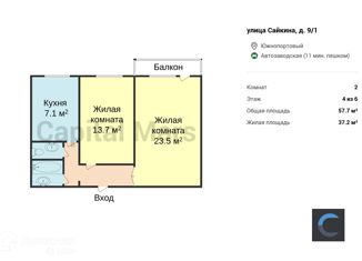 Продам двухкомнатную квартиру, 57.7 м2, улица Сайкина, 9/1