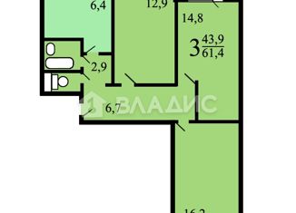 Общая площадь: 63.3 м2