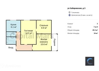 Продается 3-комнатная квартира, 49.2 м2, Хабаровская улица, 3