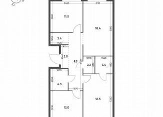 3-комнатная квартира на продажу, 71.8 м2, 3-я очередь, к6