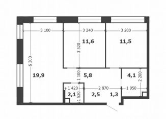 Общая площадь: 57.3 м2