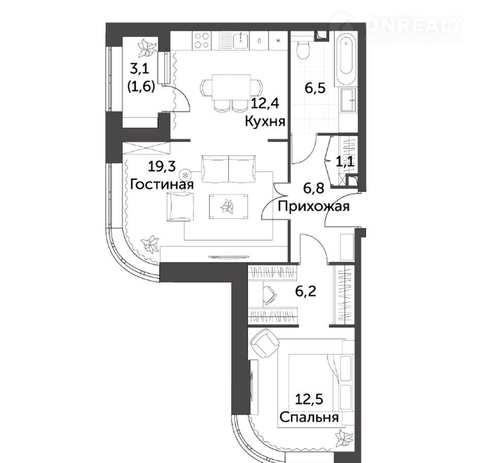 Просторная кухня-гостинная, лоджия, радиусное остекление, гардеробная. Квартира с предчистовой отделкой (White box).