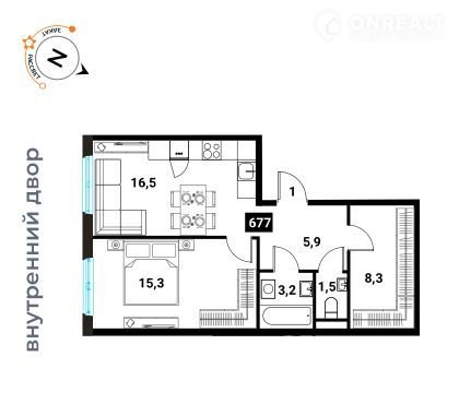 Общая площадь 50.7 м2